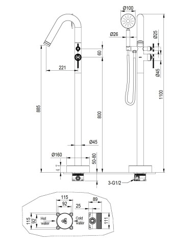 Смеситель напольный Boheme Eterna Nickel Brush 179-NB