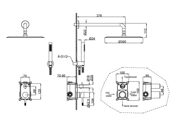 Размер верхнего душа 20 см