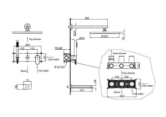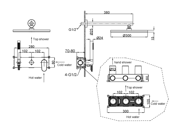 Размер верхнего душа 21 см