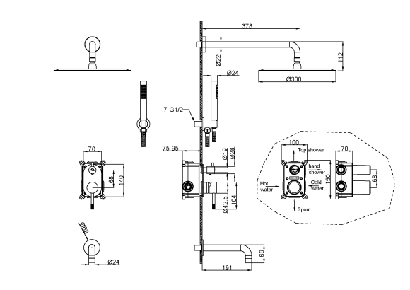 Размер верхнего душа 20 см