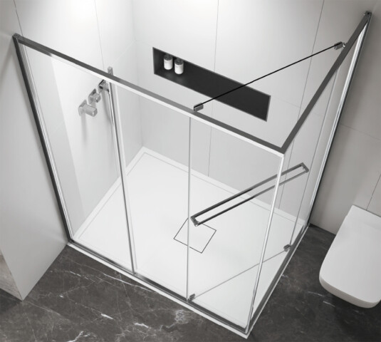 Толщина полотна составляет 6 мм, крепкое закаленное стекло, ширина входа 54 см.