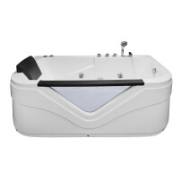 Ванна гидромассажная прямоугольная для установки в левый угол. Размеры 168*90*68 см. В комплектацию входит полиуретановый подголовник, смеситель для набора воды в ванну, а также ручной душ. Мощность а также запуск системы гидромассажа осуществляется с помощью пневмокнопки. Ванна имеет декоративное окно из прозрачного пластика.