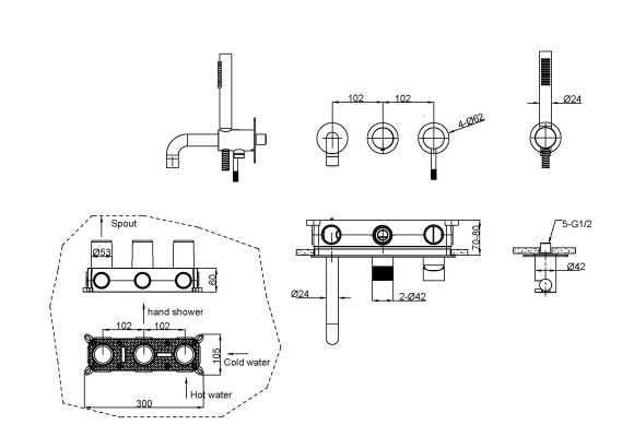 - Настенный при котором внутренняя часть врезается в стену. Температура воды регулируется внешней накладкой. Установить такую модель несложно самому, с минимальным инструментом, а комплектующие включены в цену.