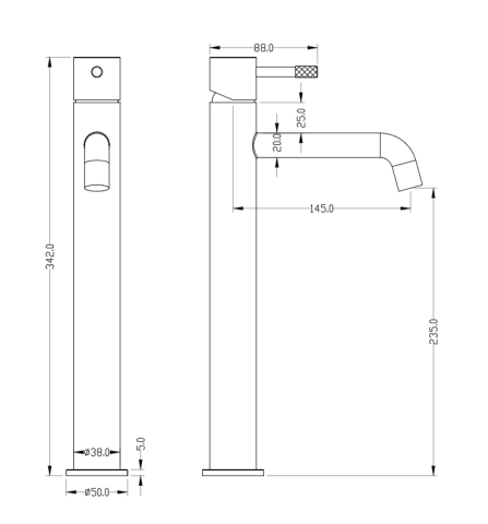Высота излива 25,7 см